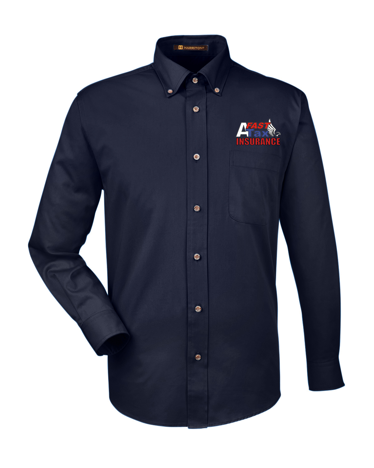 Harriton Men's Easy Blend? Long-Sleeve Twill Shirt with Stain-Release Black