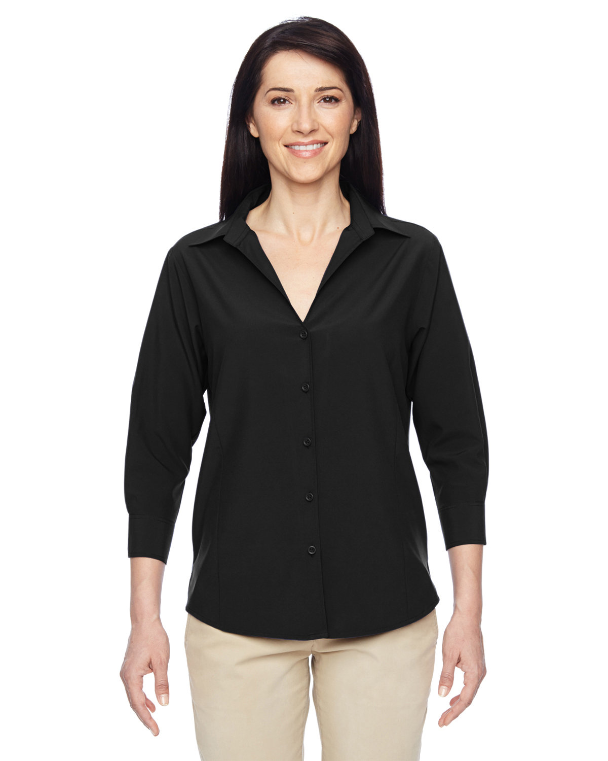 Harriton Ladies' Paradise 3/4-Sleeve Performance Shirt Black