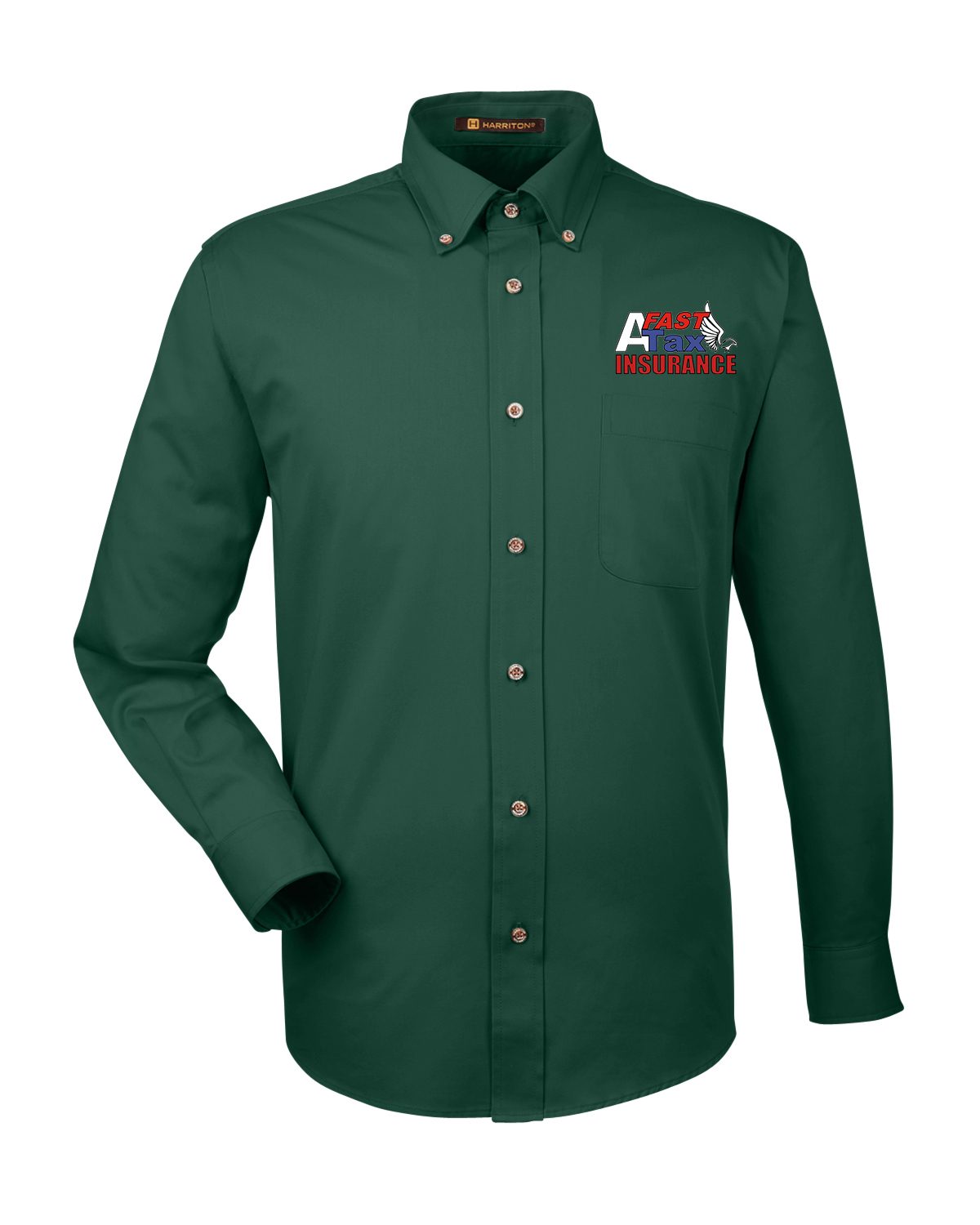 Harriton Men's Easy Blend? Long-Sleeve Twill Shirt with Stain-Release Green Forest