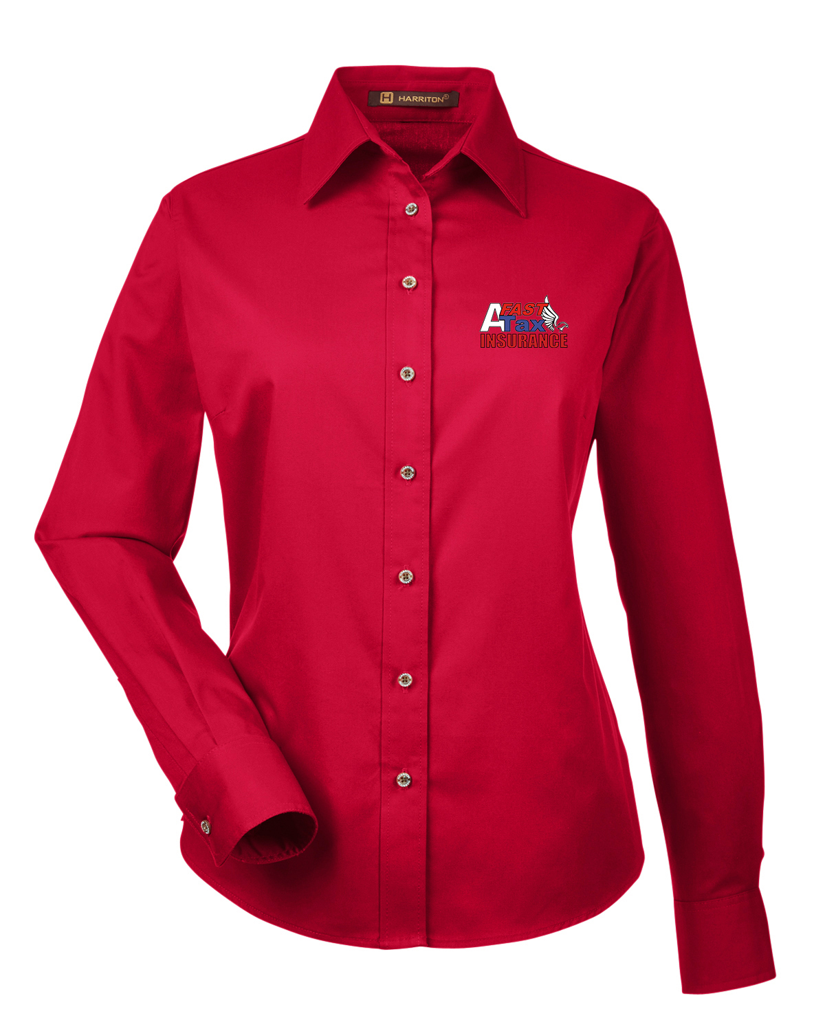 Harriton Ladies' Easy Blend? Long-Sleeve Twill Shirt with Stain-Release Red