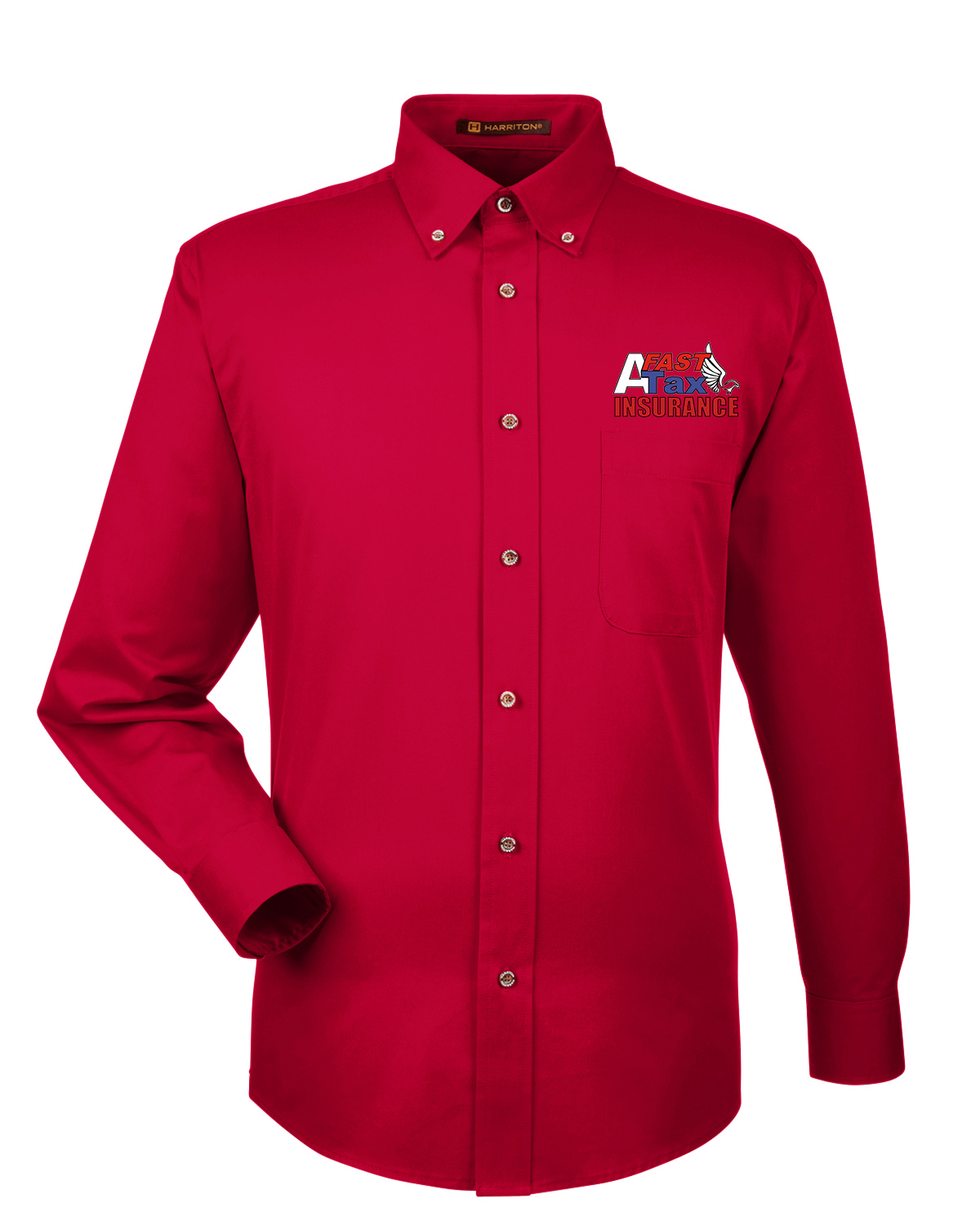 Harriton Men's Easy Blend? Long-Sleeve Twill Shirt with Stain-Release Red