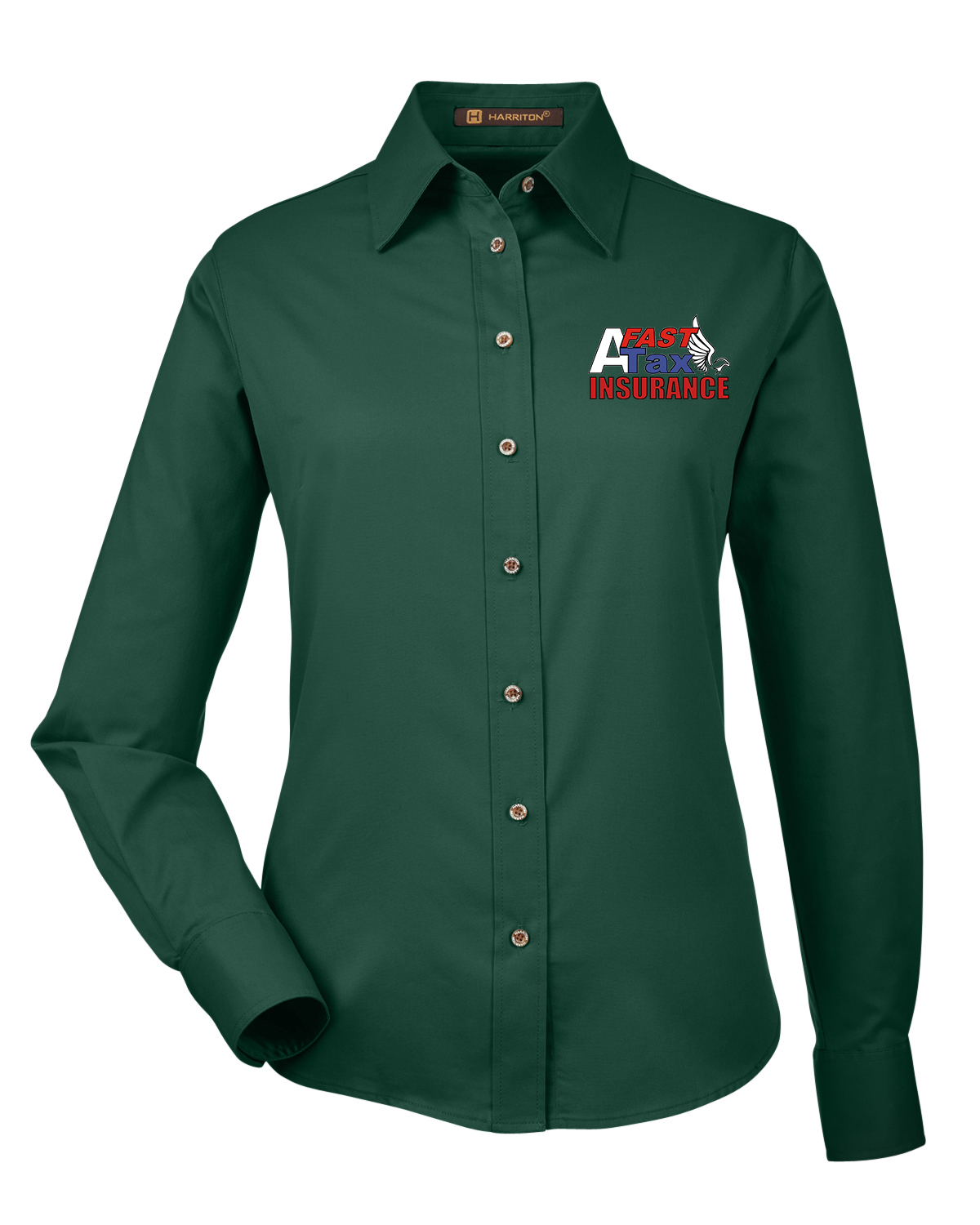 Harriton Ladies' Easy Blend? Long-Sleeve Twill Shirt with Stain-Release Forest Green