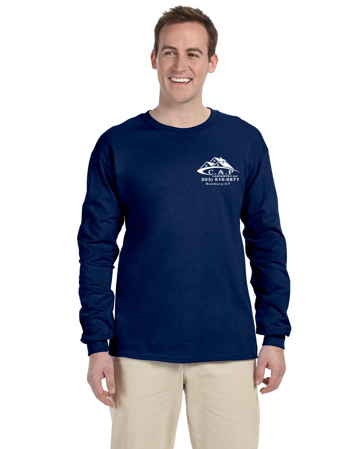 Round Neck Men's T Shirt 100% Cotton Long Sleeve, Navy