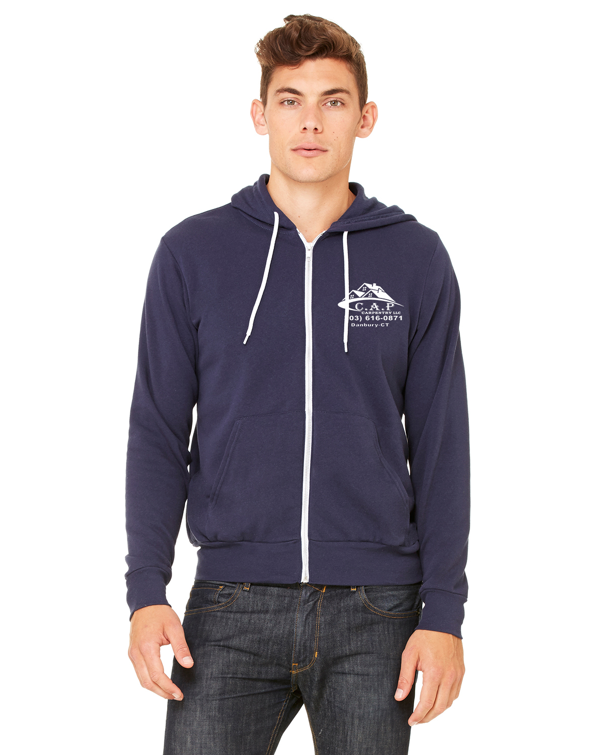 Bella + Canvas Unisex Poly-Cotton Fleece Full-Zip Hoodie, Navy